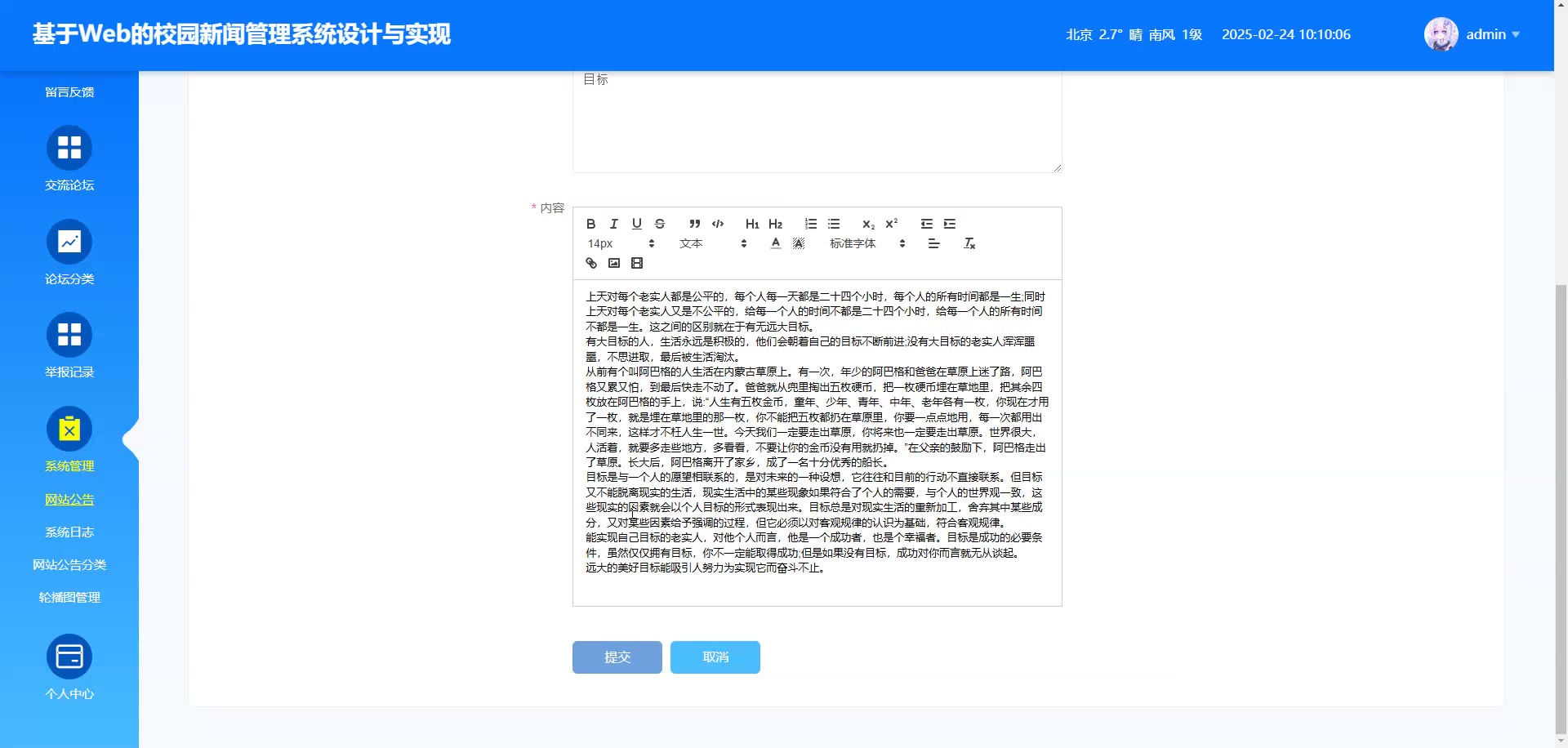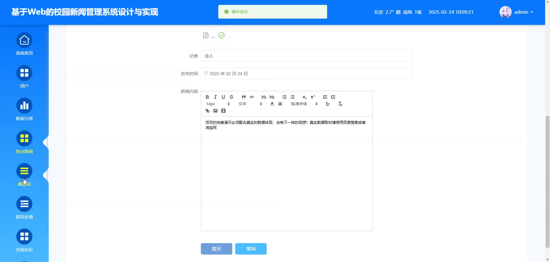 基于Web的SpringBoot+Vue校园新闻管理系统源码(提供导入教程+讲解)springboot2318