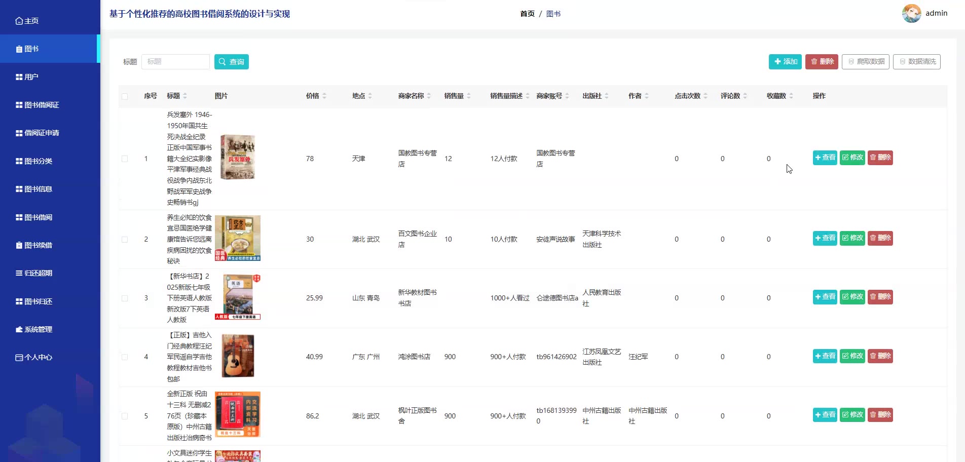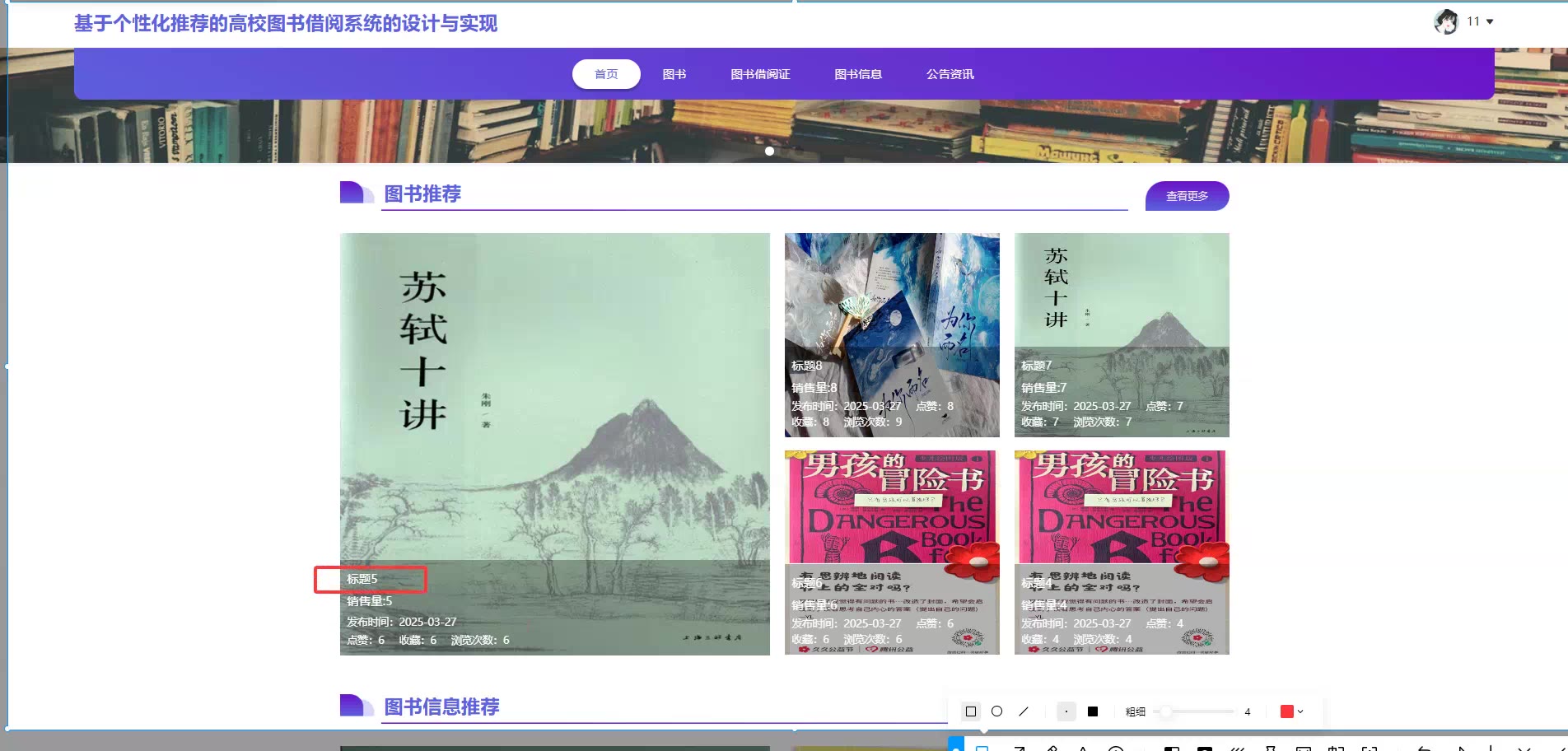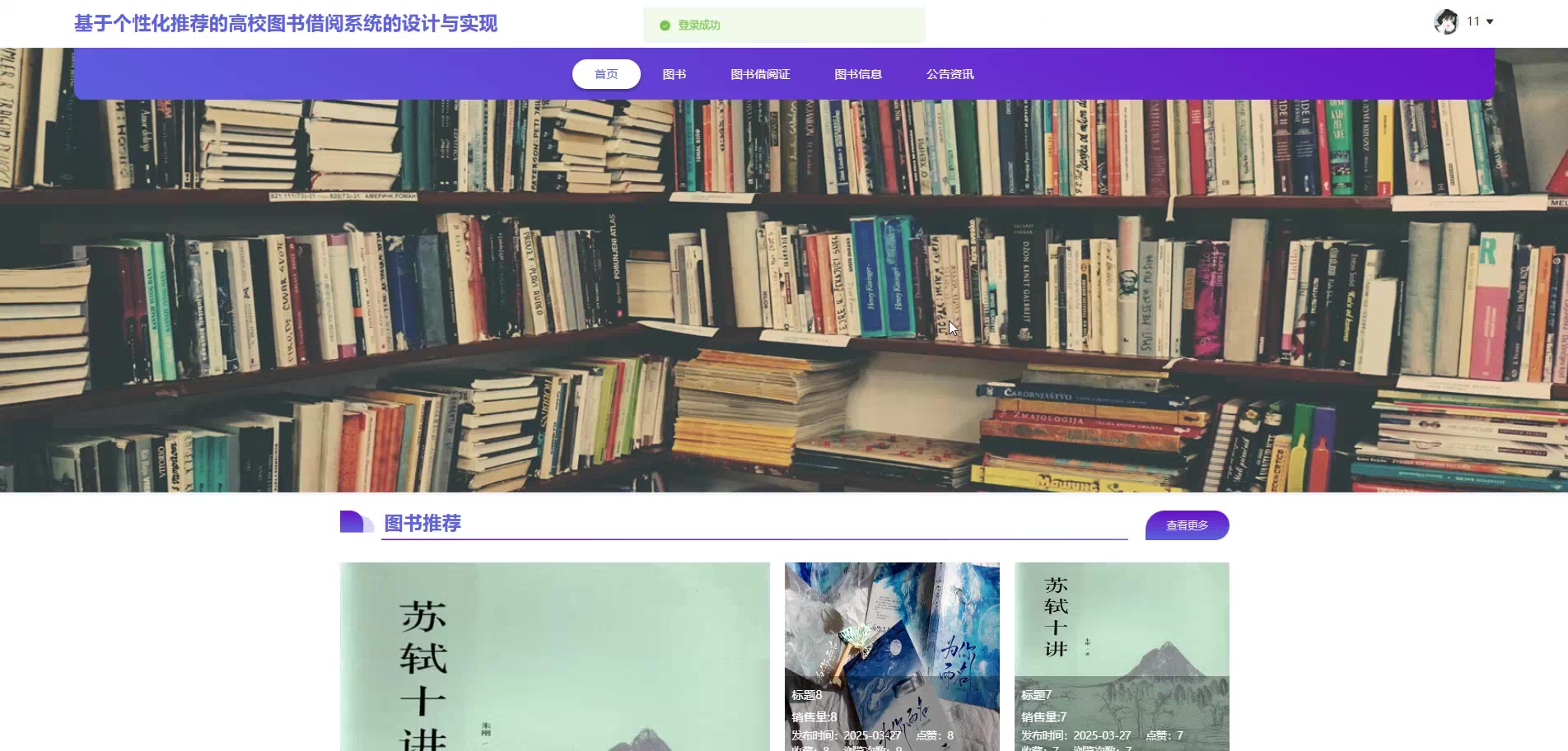 基于个性化推荐的SpringBoot Vue高校图书借阅系统源码(提供导入教程+讲解)springboot2323