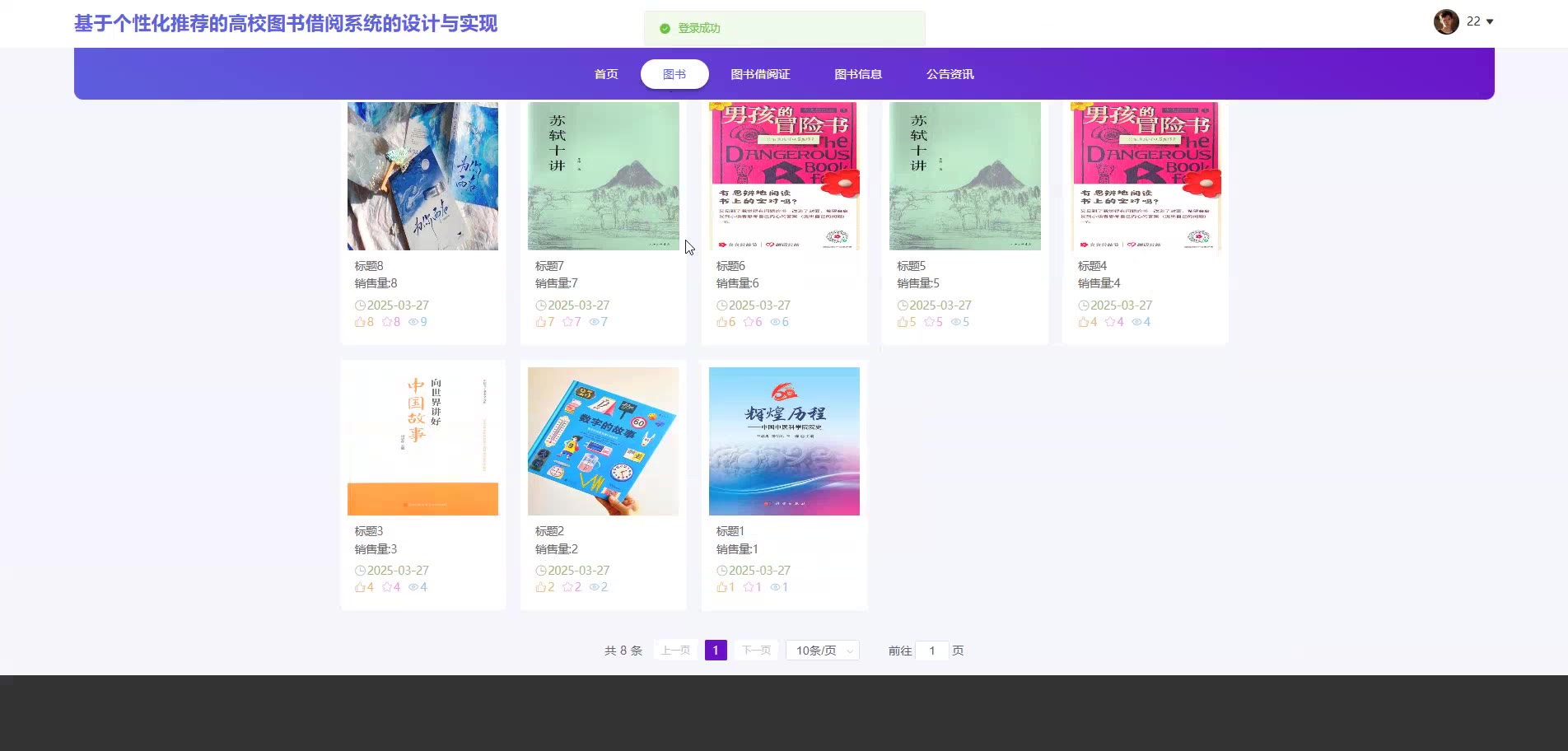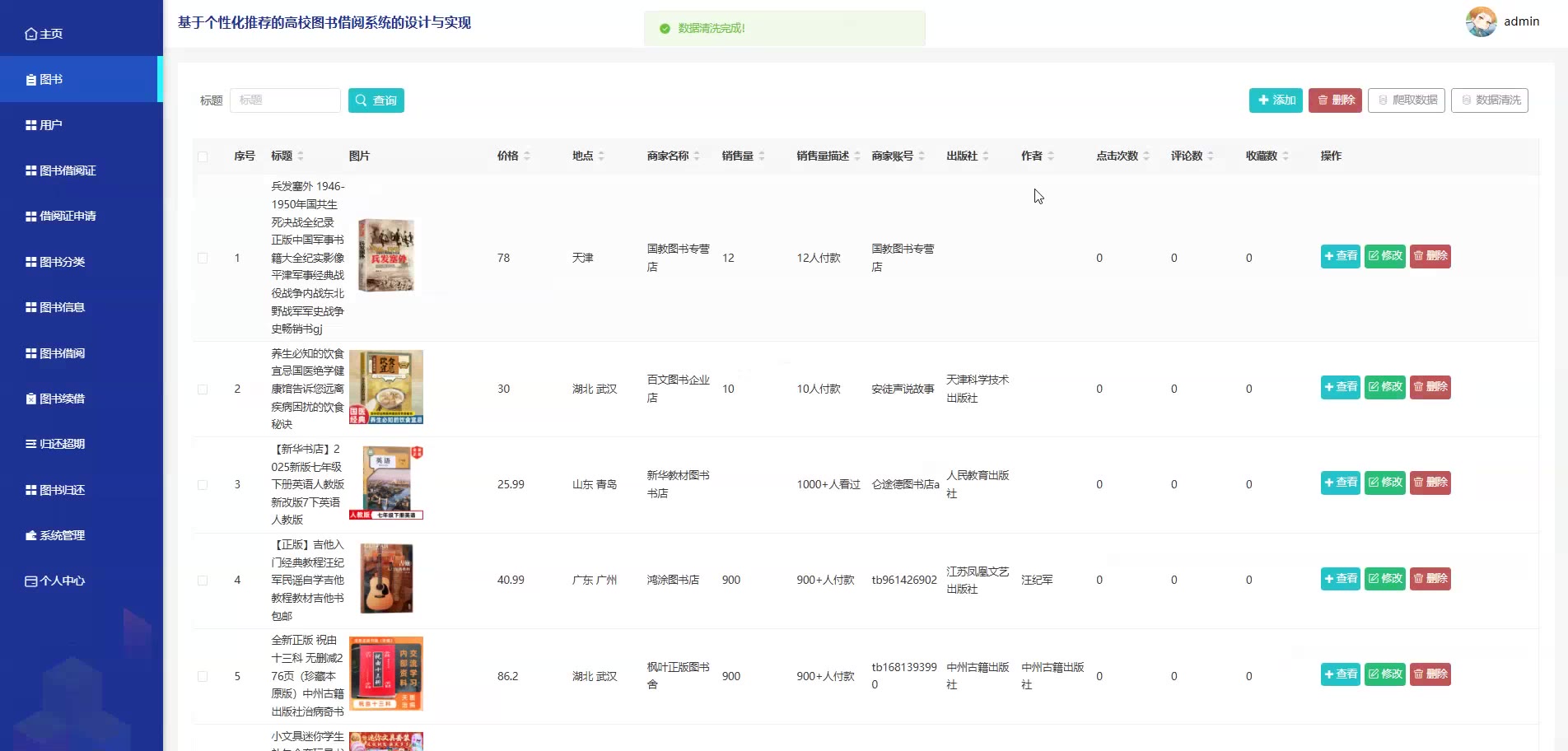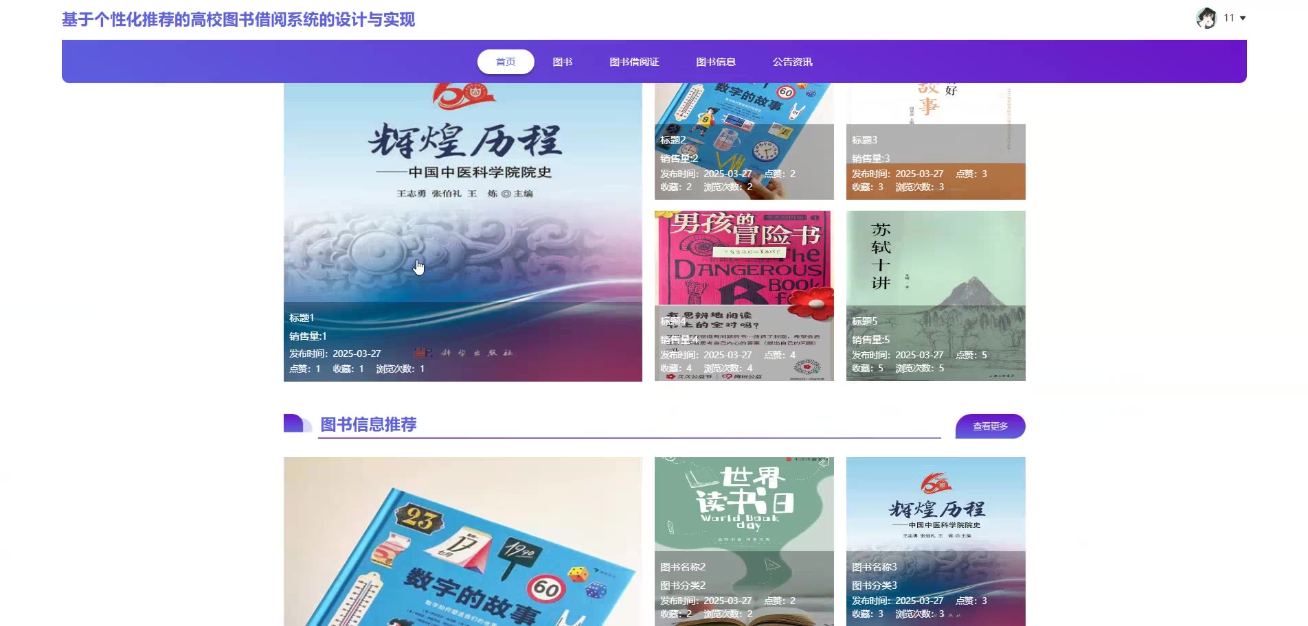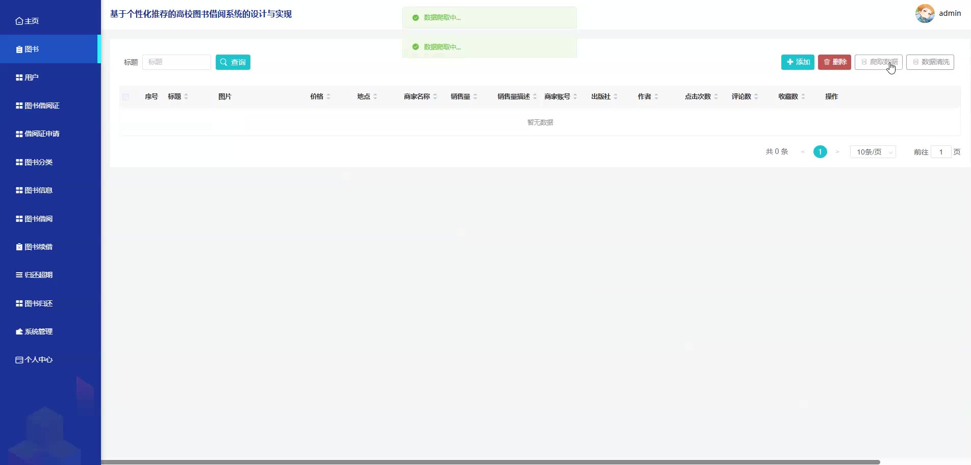 基于个性化推荐的SpringBoot Vue高校图书借阅系统源码(提供导入教程+讲解)springboot2323