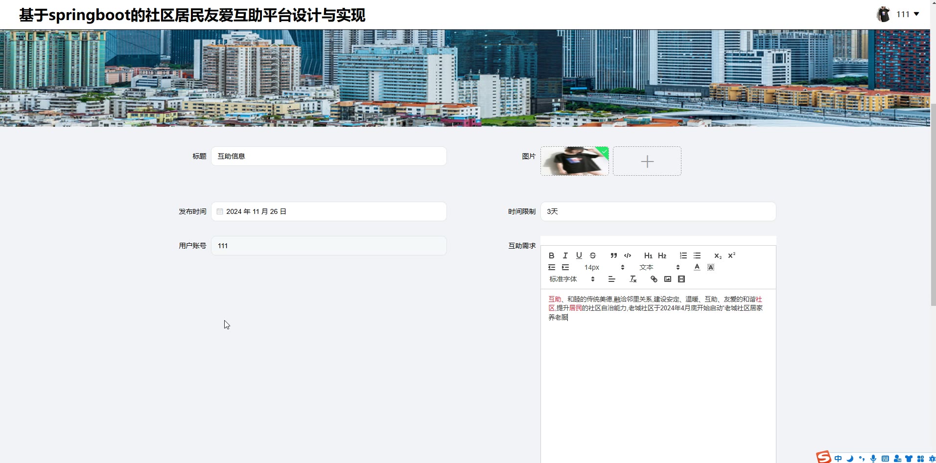 基于SpringBoot Vue的社区居民友爱互助平台源码(提供导入教程+讲解)springboot2346