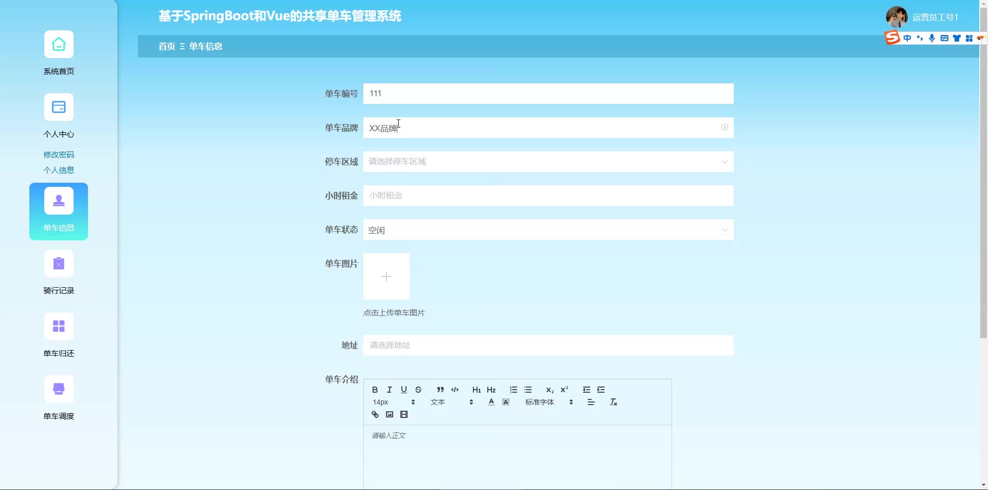 基于SpringBoot和Vue的共享单车管理系统源码(提供导入教程+讲解)springboot2365