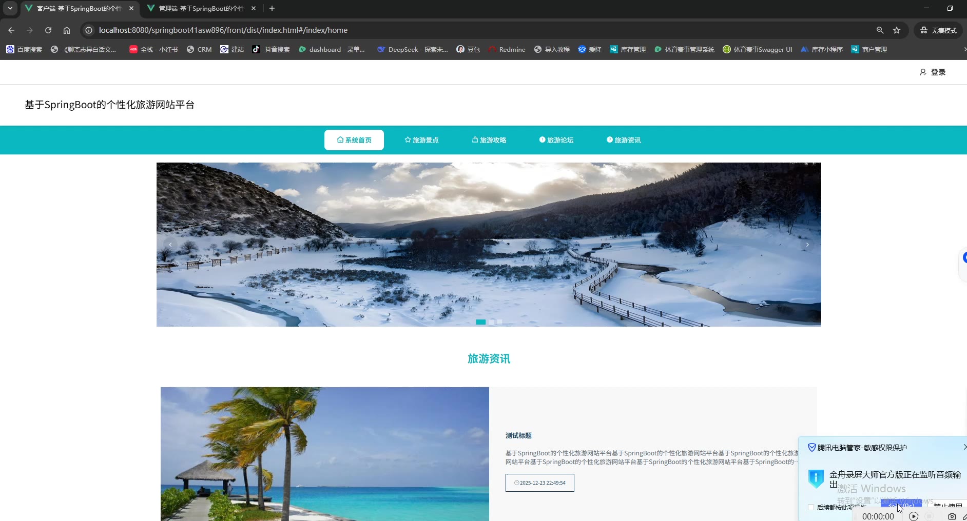 基于SpringBoot Vue的个性化旅游网站平台源码(提供导入教程+讲解)_2391