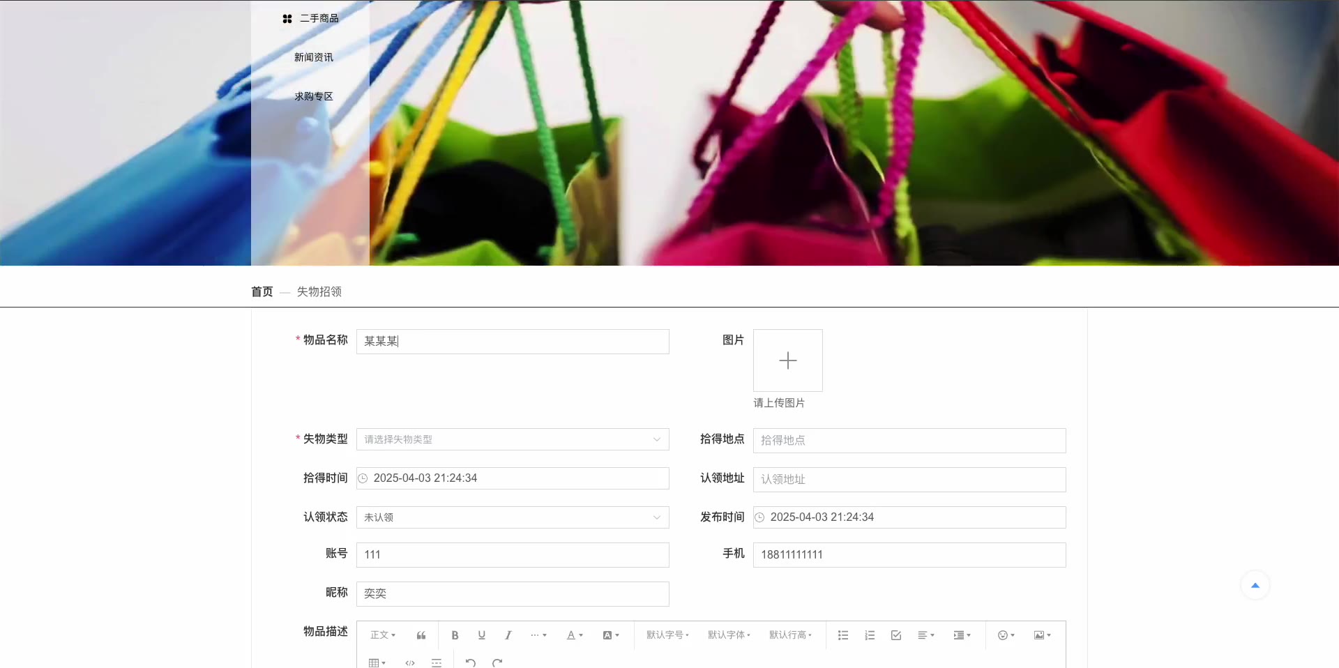 基于SpringBoot Vue3的失物招领平台源码(提供导入教程+讲解)_2539