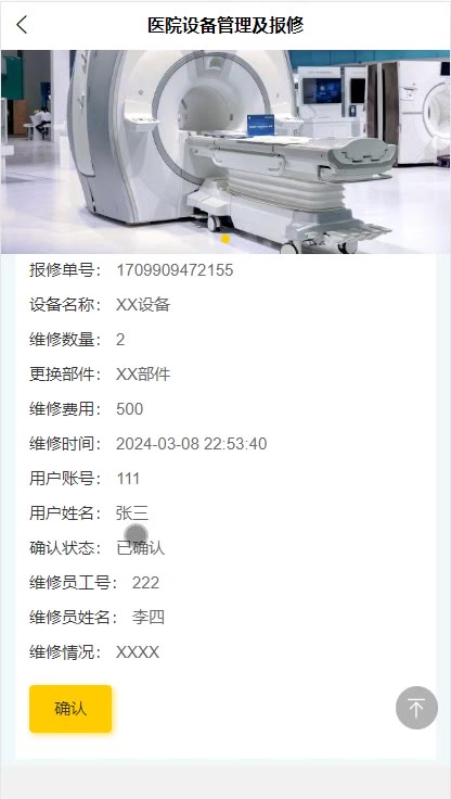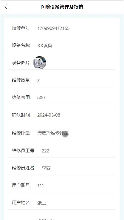 springboot医院设备管理及报修小程序源码weixin535