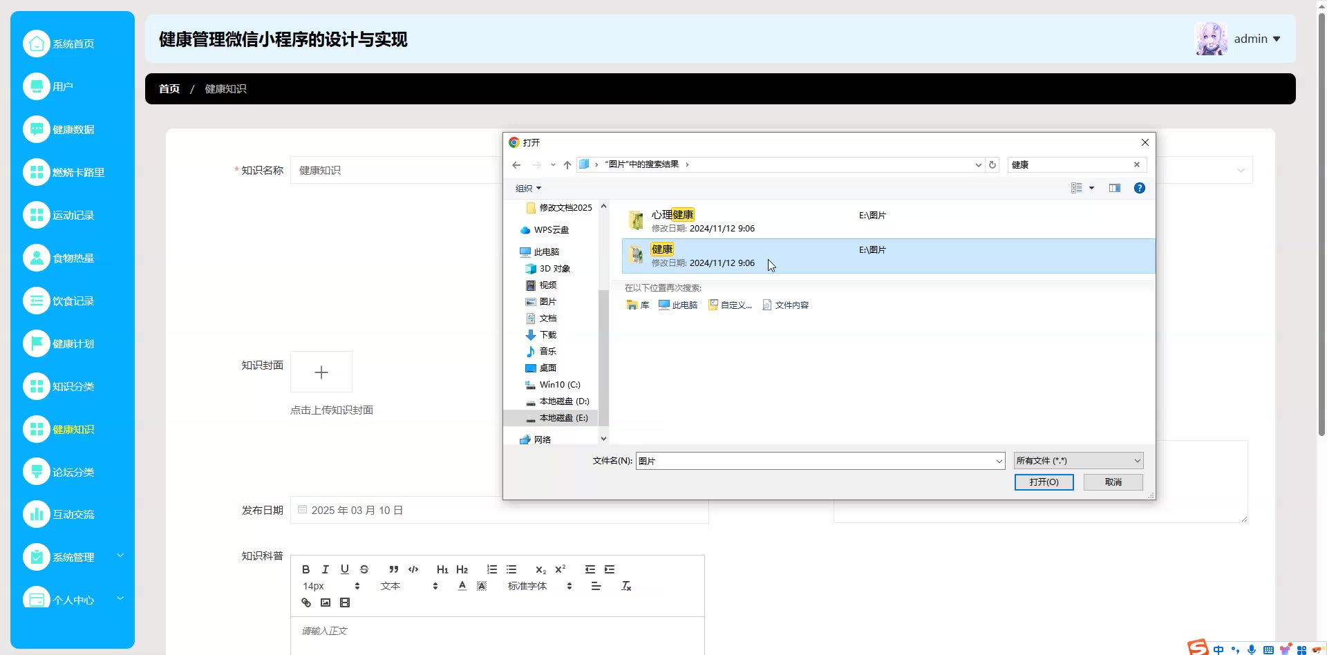 基于SpringBoot+Vue的健康管理微信小程序源码+论文weixin627