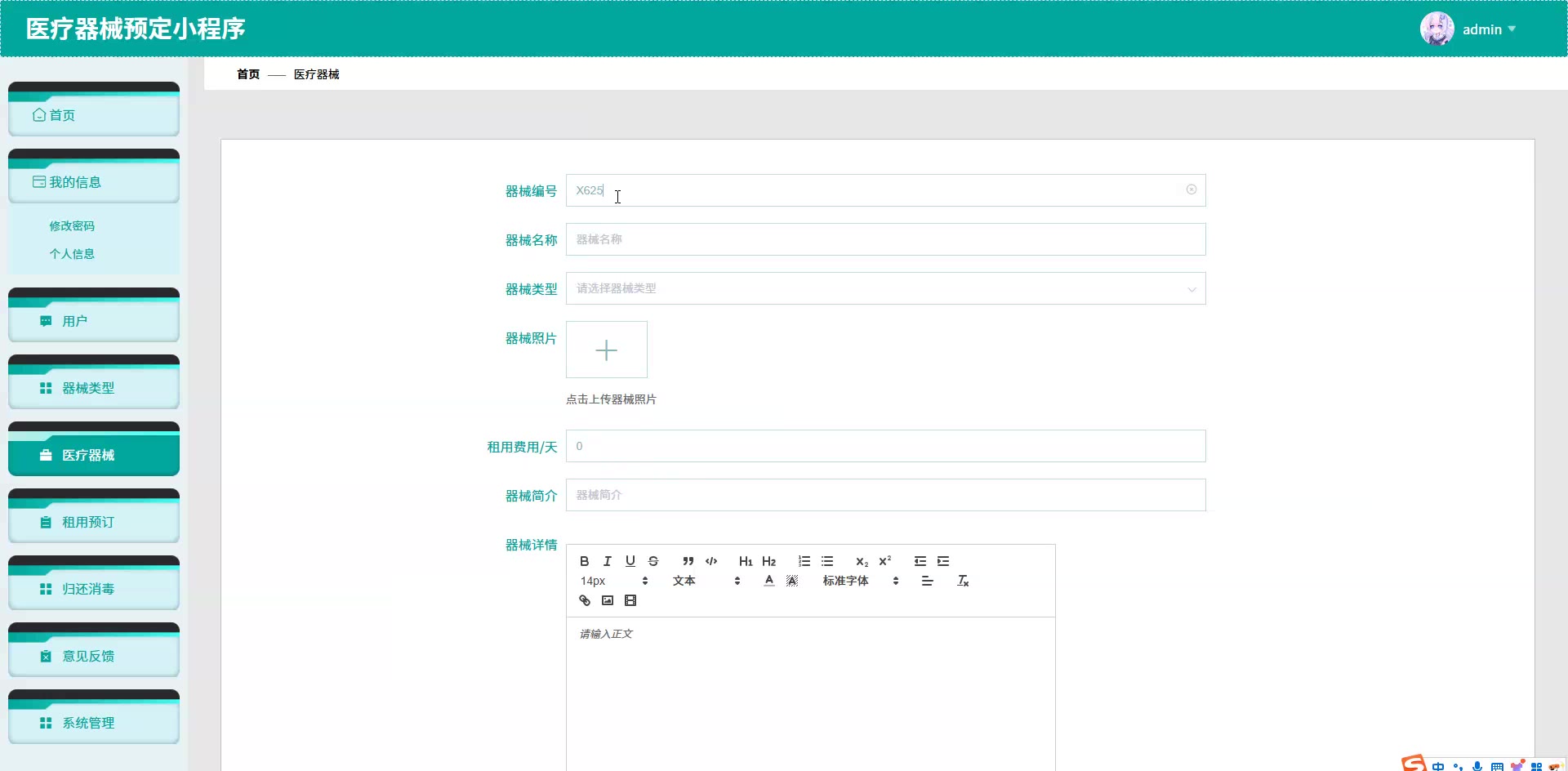 基于SpringBoot+Vue的医疗器械预定小程序源码weixin629
