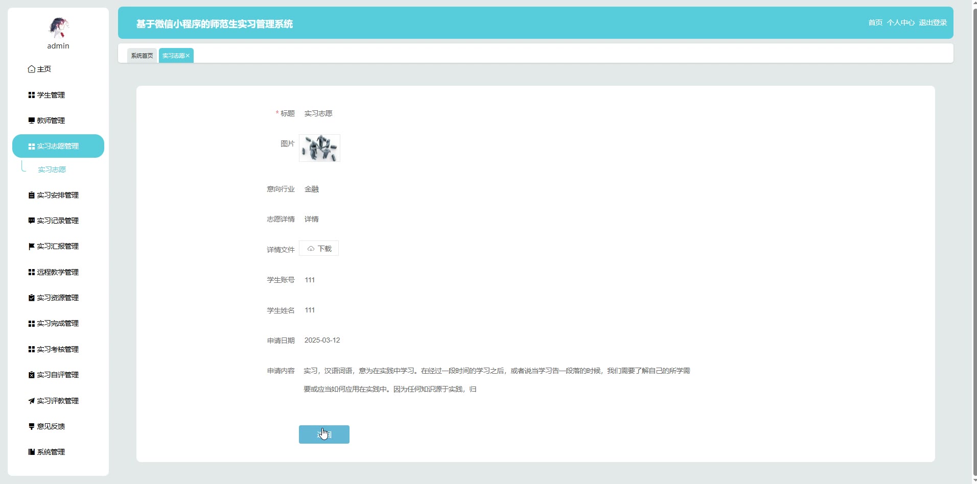 基于微信小程序的师范生实习管理系统SpringBoot+Vue小程序源码+论文weixin640