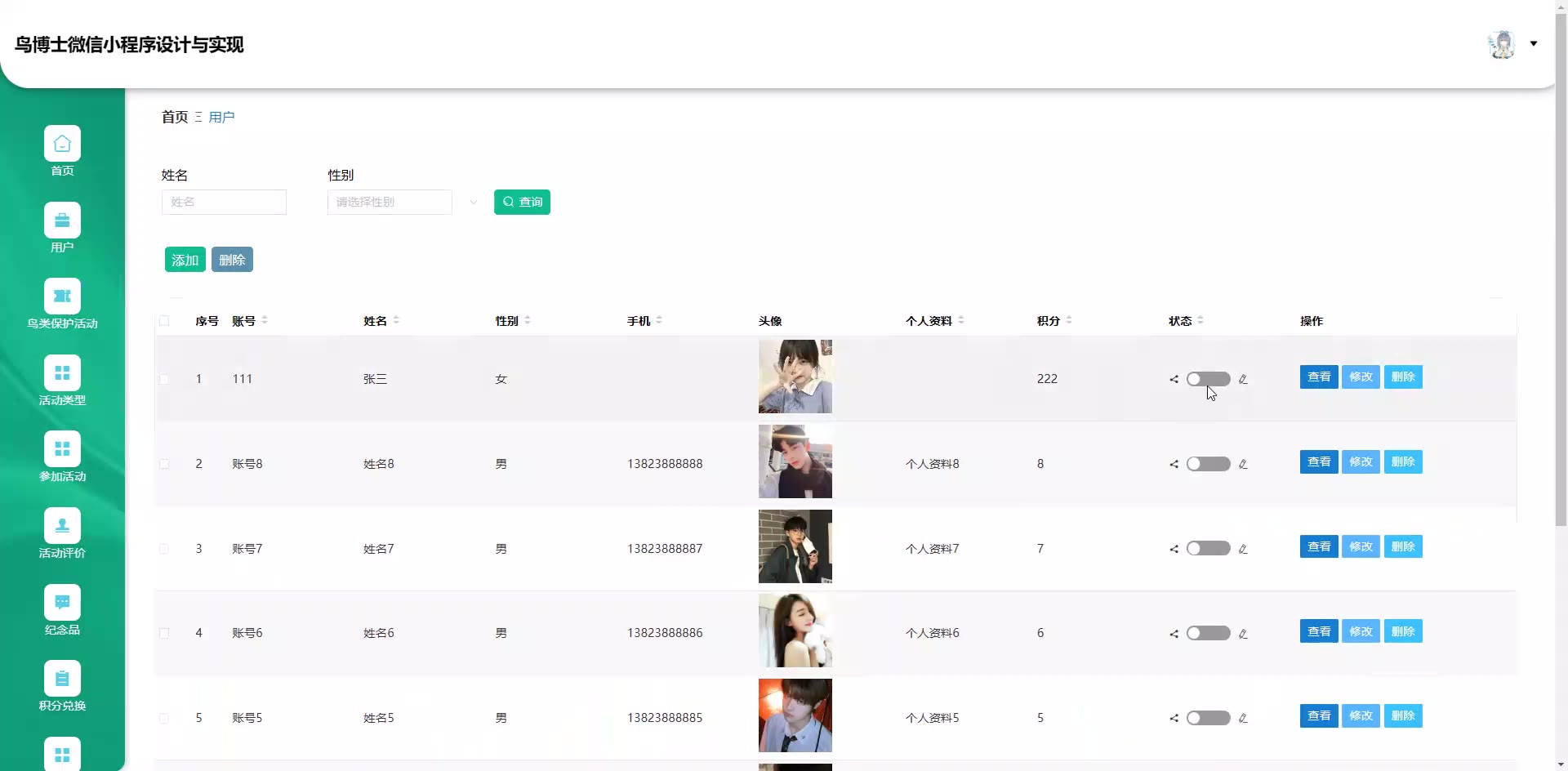 基于SpringBoot+Vue的鸟博士鸟类保护活动管理微信小程序源码+论文weixin648