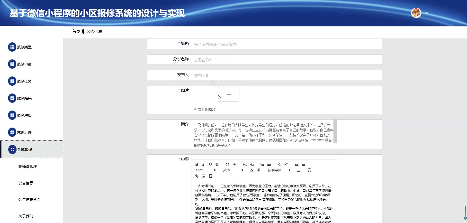 SpringBoot+Vue基于微信小程序的小区报修系统小程序源码weixin671