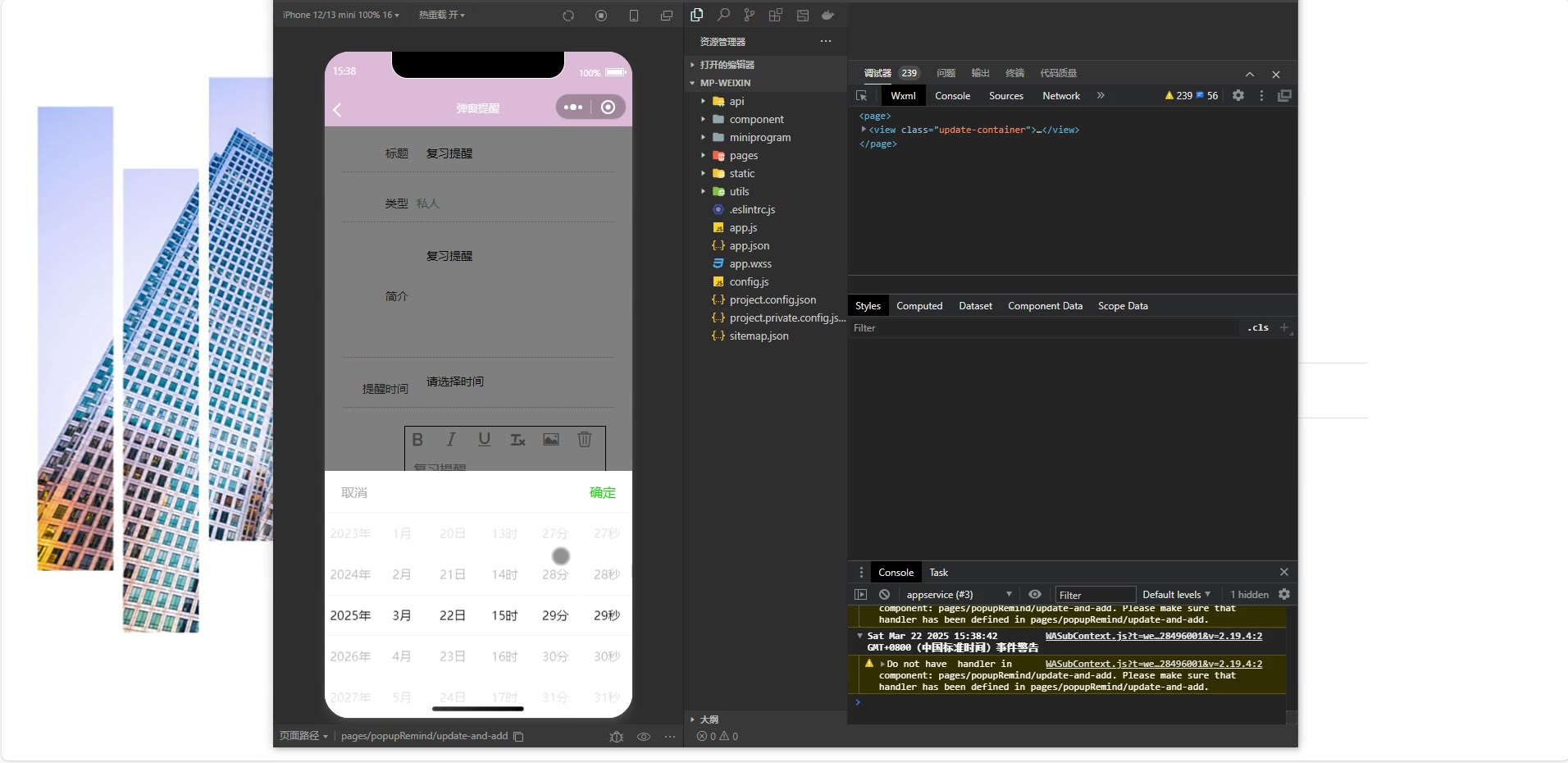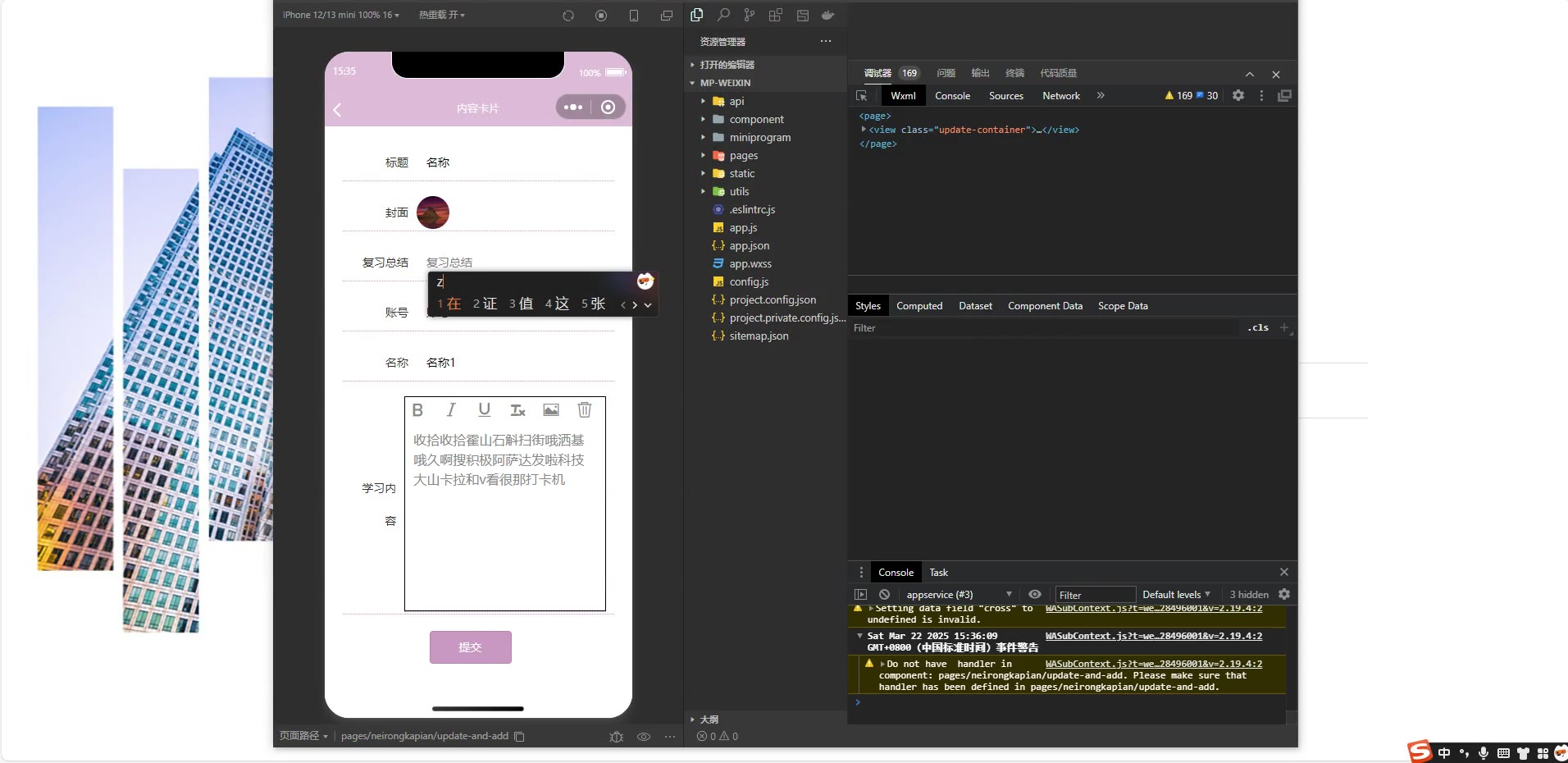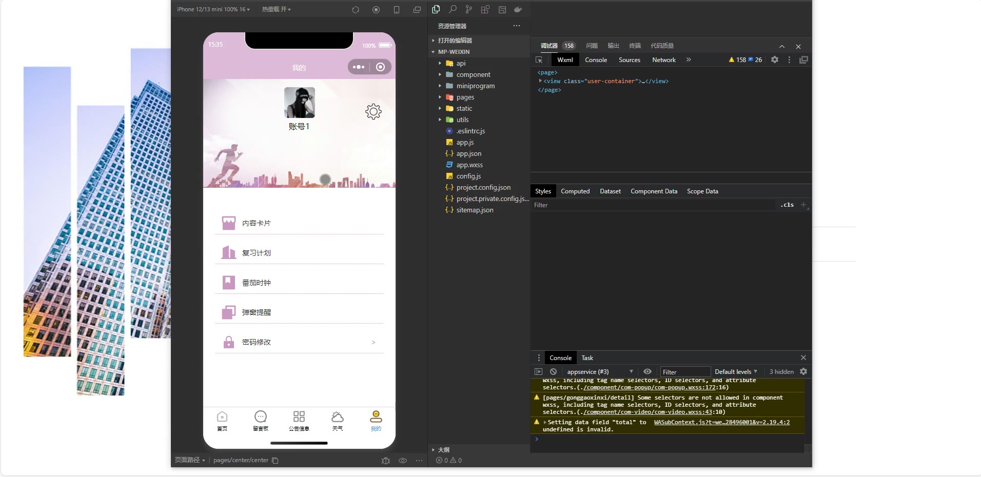 ③:技术栈:Java、SpringBoot+vue+小程序 小程序:微信开发者工具