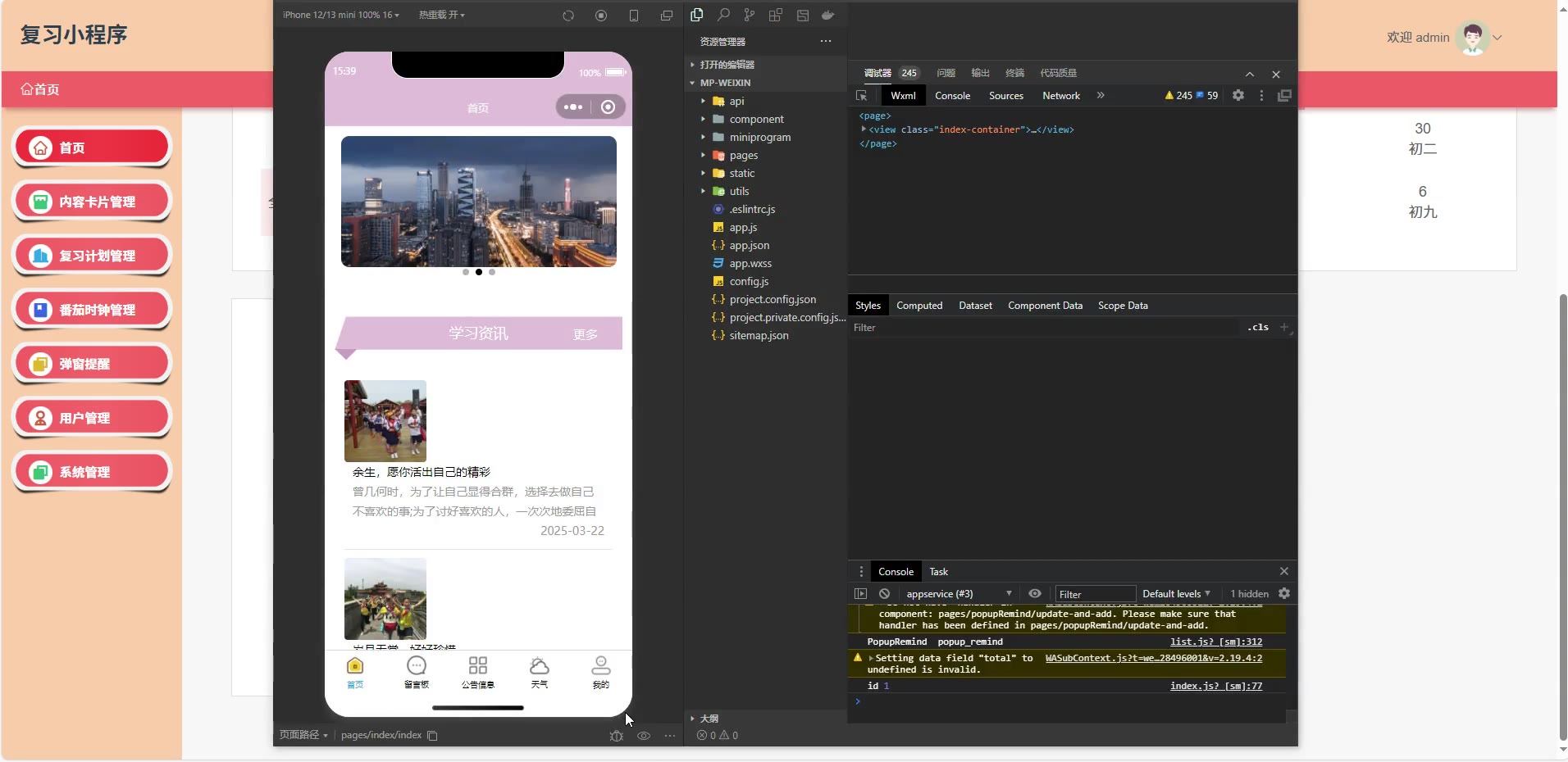 基于SpringBoot+Vue3的复习学习计划原生小程序源码weixin676