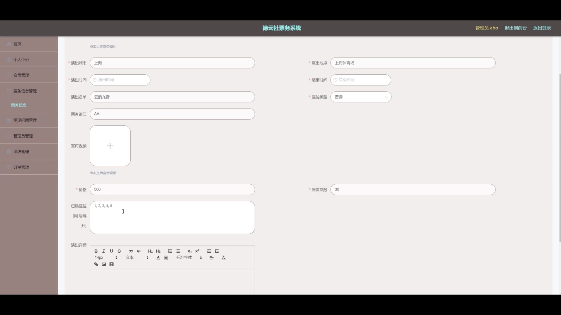 基于ssm+vue德云社票务系统源码和论文063