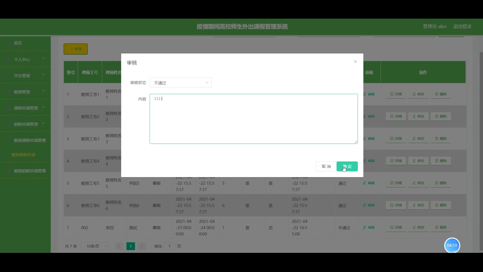ssm+vue高校师生外出请假管理系统源码和论文213