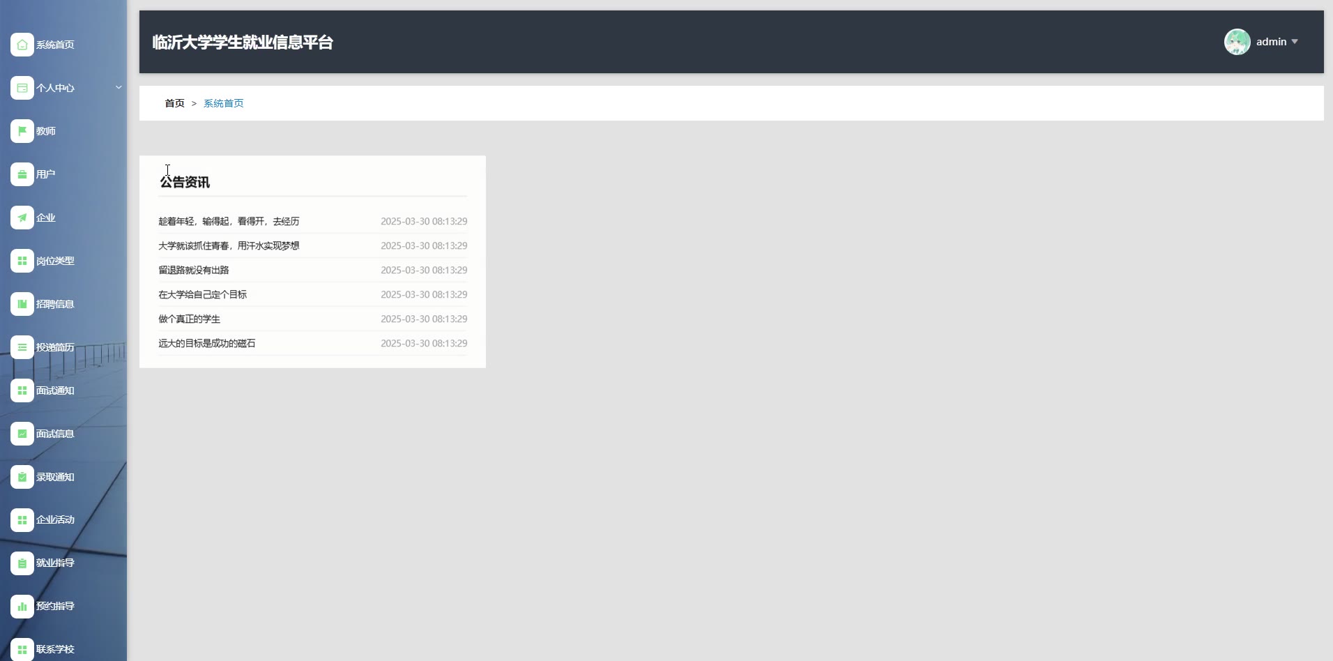 基于SpringBoot Vue的大学学生就业信息平台源码(提供导入教程+讲解)springboot2168