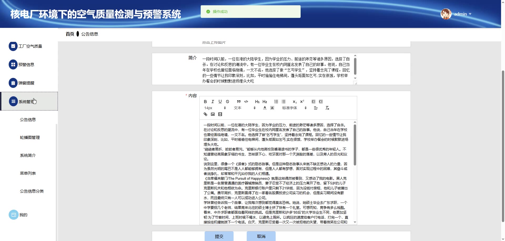 基于SpringBoot核电厂环境下的空气质量检测与预警系统源码(提供导入教程+讲解)springboot2236