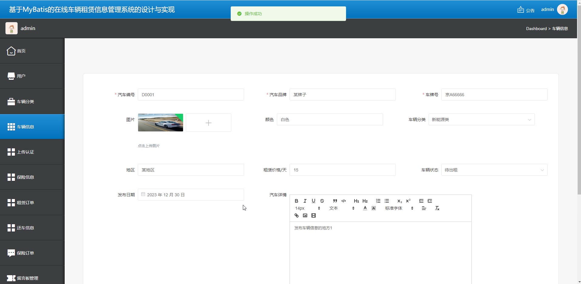 springboot在线车辆租赁信息管理系统源码springboot1560
