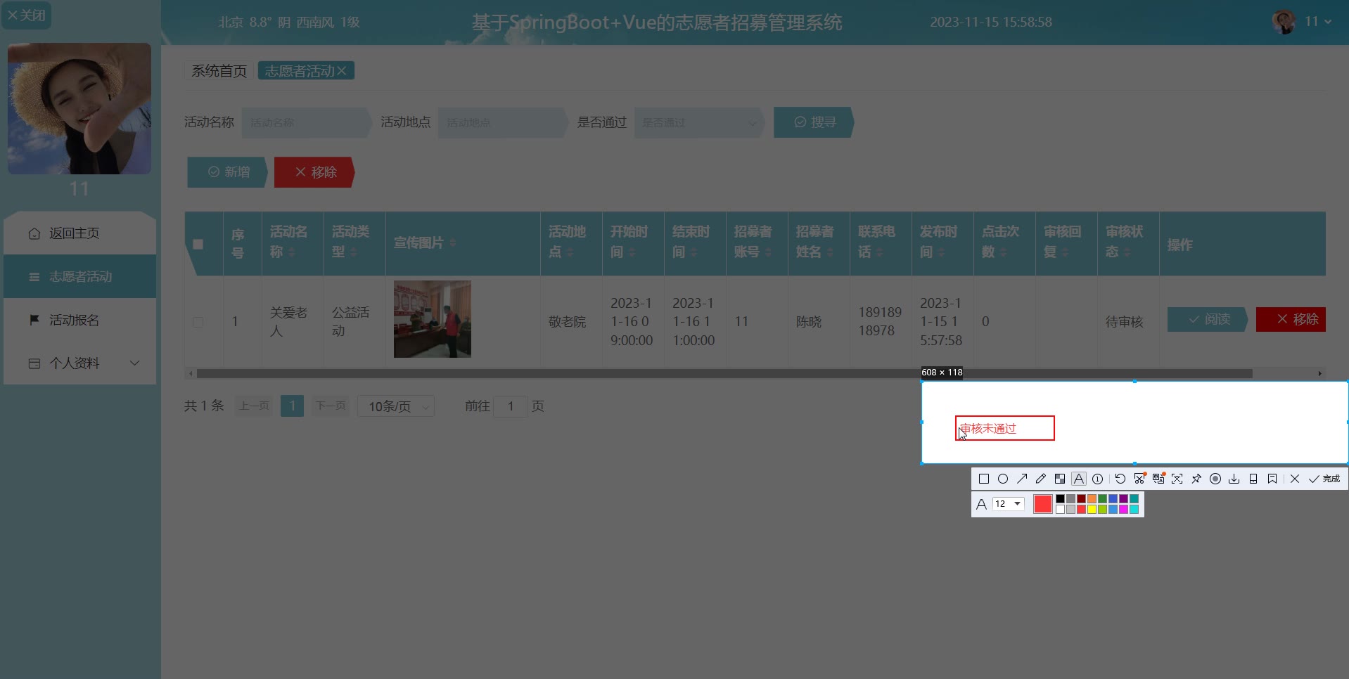 基于SpringBoot+Vue的志愿者招募管理系统源码springboot1649