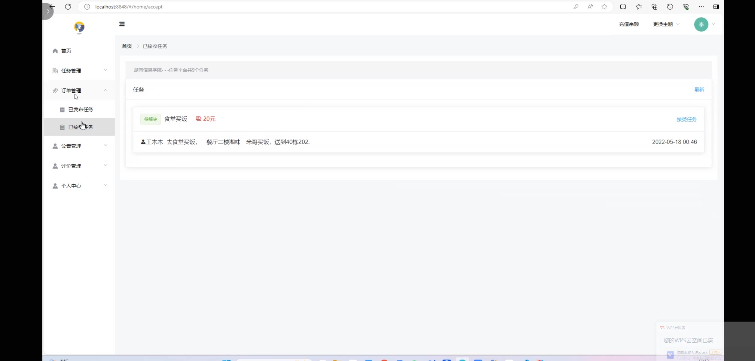 【957】基于springboot vue校园跑腿系统