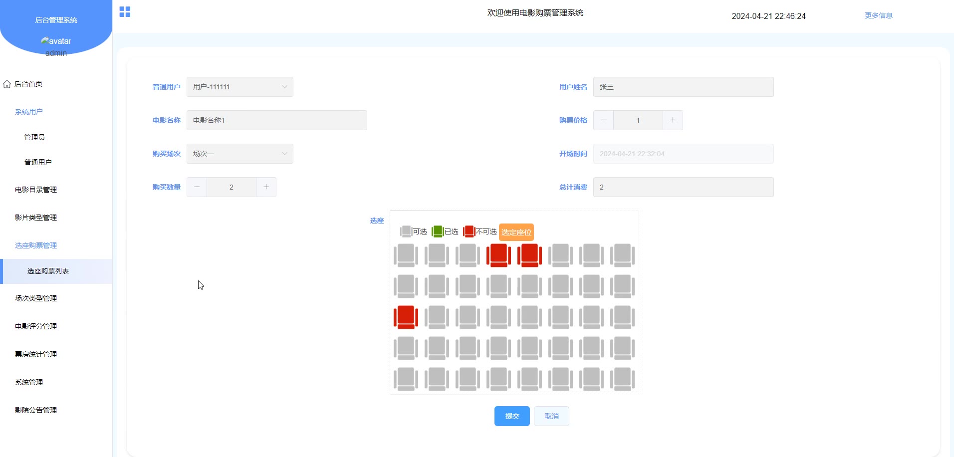 【976】基于SSM+VUE的电影购票管理系统源码和论文答辩PPT
